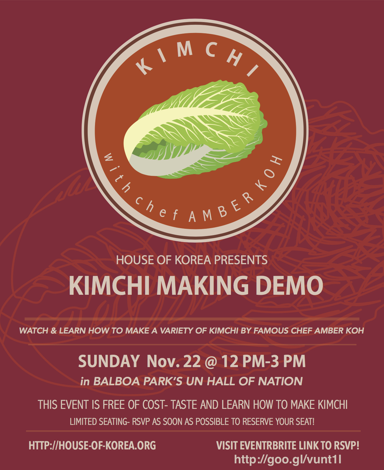 THIS EVENT IS FREE OF COST- TASTE AND LEARN HOW TO MAKE KIMCHI LIMITED SEATING- RSVP AS SOON AS POSSIBLE TO RESERVE YOUR SEAT!